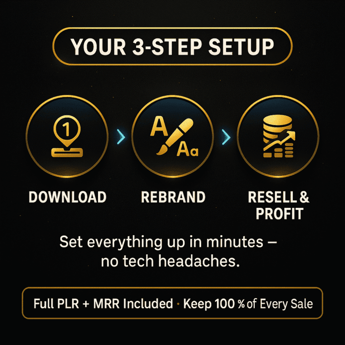 You’ll receive full PLR (Private Label Rights) and MRR (Master Resell Rights). That means you can: